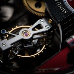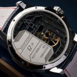 For the tourbillons to operate at an optimum, it is very important that they get enough and constant, power fed. Two rapidly rotating coaxial superposed barrels take care of this. Of the three springs, one is a slipping spring, protecting the movement from overwinding. The power reserve of the watch, a healthy 55 hours, is displayed by a grooved scroll, located at the bottom of the dial. It fits nicely in with the cone design of hour and minutes, which are positioned on right side of the detailed dial. This also gives the Histoire de Tourbillon 8 an even more technical look compared to its predecessor, the No. 7.