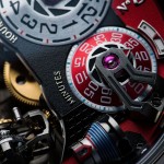The vast majority of the movement is made from titanium. Although not the easiest to work with, especially not given the complex movement of the watch, it offers various advantages. Not only is it light-weight, but also very rigid and non-magnetic. Important characteristics when you are making a watch aimed at precision. The finish is up to Haute Horlogerie standards, which includes hand-bevelling of the edges of each component.