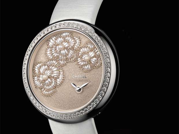 One of the masters at this art is Chanel, which has been creating embroidered dials for three years now. The Swiss-made watches with embroidered dials made in France are part of the brand’s Mademoiselle Prive’ collection. For the making of these dials, Chanel has brought it own unique Lesage method of hand embroidering diamonds, gold and pearls onto a watch dial. The technique is incredibly labor intensive, with everything done by hand in the France-based Maison Lesage workshops. Lesage, founded in 1858 as Michonet and then purchased by Albert and Marie-Louise Lesage in 1924, is one of the world’s most renowned hand embroidery workshops. In 2002, Lesage joined forces with Chanel, collaborating on haute couture collection, and then three years ago the two companies branched out to embroidering on dials for the Mademoiselle Prive’ line.