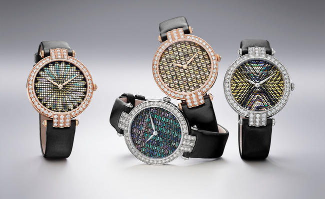 Part of the highly esteemed Métiers d’ Arts realm of watchmaking, dials made of fabric, lace or embroidery deftly bring beauty, femininity and unusual materials to all new heights. Here we bring you three top brands that use actual fabric in their watch dials.