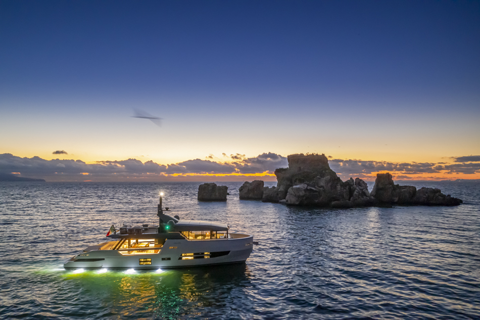 Two IPS 1350 engine version power the Sherpa XL and can exceed a maximum speed of 23 knots. Its consumption levels, approximately 6.5 l/nm at 12kn, are almost 30% lower compared to other yachts in the 85-90 feet segment. The estimated range is over 1,000 miles at 12 knots, rising to over 1,400 at a speed of 10 knots.