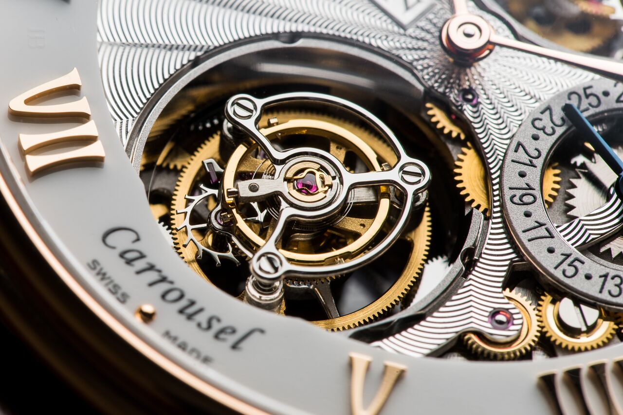 Both were developed with a single goal in mind: eliminating the influence of gravity on the precision of the movement. While a tourbillon is known to most watch collectors and connoisseurs, the Carrousel is not. It is one of those innovations that seemed to have been forgotten. To the untrained eye, the carrousel looks quite similar to the tourbillon. The major difference is that the carrousel uses two connections to the movement: one to power the escapement, the other to power the cage around it, while the tourbillon does both with a single connection. Neither one of these solutions is better than the other one, as they both accomplish the same.
