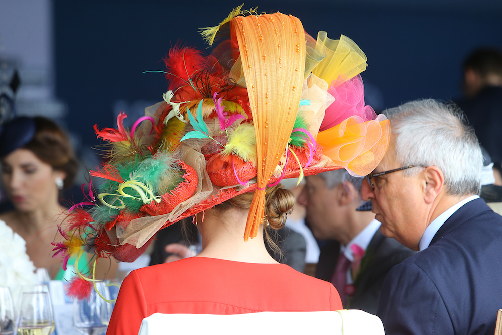 Now in its 167th year, the Prix de Diane – today known as the Prix de Diane Longines – is also famous for its elegant ladies, who traditionally wear a hat to attend. Colourful creations of feathers and flowers in all shapes and sizes dotted the crowds that enjoyed ultra-chic picnic lunches amid a garden party of amusements that ranged from a live concert of French folk duo “Brigitte” to a Ferris wheel, croquet, table tennis, swings, and giant outdoor dominos. As a sign of utmost elegance, the skies, though often grey, were politely dry throughout the day.