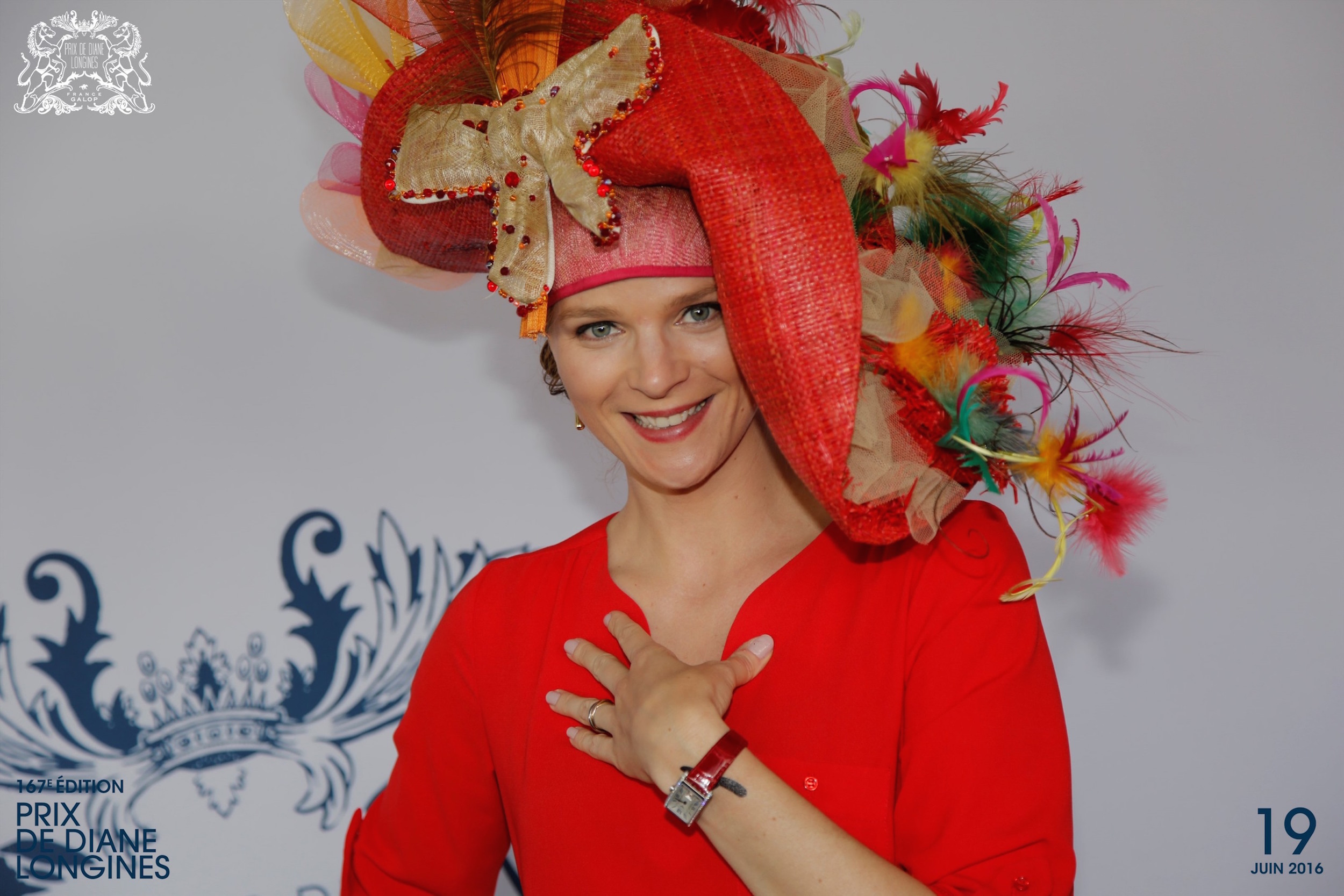 Another much-awaited competition of the day is that of “Mademoiselle Diane par Longines”. This year, it was Alexia Masseron who was selected as the most elegant lady at the racecourse, winning with her title the Longines DolceVita watch – the Official Watch of the event – cased in stainless steel, decorated with diamonds, featuring a silver-coloured “flinqué” dial adorned with painted Roman numerals, showing hours, minutes and small seconds at 6 o’clock, and set on a red leather bracelet.