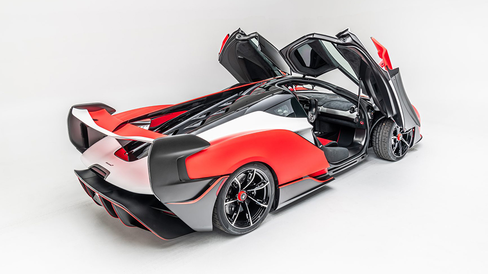 The hypercar is essentially the offspring of the iconic 250-mph McLaren Speedtail and McLaren Senna with bespoke features and an exaggerated speed and aerodynamics. Some of the amazing features of this hypercar include Le Mans-style fin, giant rear diffuser, front splitter, and distinctive three-slat wing. The striking McLaren butterfly doors complete the look of the two-seater vehicle.
