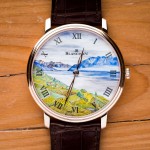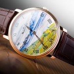 UNESCO noticed, and so did Blancpain: the vineyard terraces of Lake Geneva are extraordinairy. The same can be said for the painstaking details in which their beauty is captured on the Grand Feu enamel dial of this Villeret. The colors, the light, the contrast of the mountains and the vineyards, it is all there in its full glory. This scenery is framed by the 18K red gold case with its signature stepped bezel. Inside we find manufacture caliber 15B, a manual wind, ultra-thin movement, originating from the Villeret pocket watch, and the perfect companion for a watch as pure like this. The only disappointing thing about this watch is however that it is a Piece Unique.