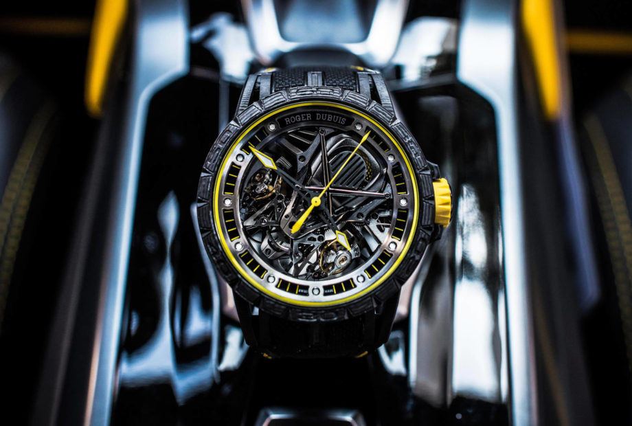 With its recently announced partnership with Lamborghini, Roger Dubuis also launched the Excalibur Aventador S. This watch shares part of the DNA of the Excalibur Quatuor, as it is fitted with two inclined escapements connected through a differential for extra accurate timekeeping. Perhaps this is also why Roger Dubuis fitted this watch with a deadbeat complication, allowing the second’s hand jump from second to second, in the same fashion as a quartz watch does. While the Excalibur Aventador S is just like its automotive counterpart, a sum of many high-tech materials, it is crafted and finished by hand, combining the best of both worlds.