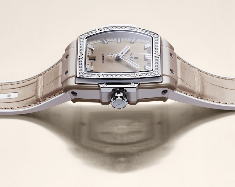 While we all need love, no love is the same. This uniqueness is also something we can find in the new Hublot Spirit of Big Bang Ceramic Beige. This watch looks like true eye candy, with its tonneau-shaped case, which is crafted from a stunning looking beige ceramic. Making ceramic in this color is quite challenging, but Hublot has mastered creating the most vibrant and unique colors in this light and scratch-resistant material since they first introduced it into their collection in 2005. With a diameter of 39mm is the Hublot Spirit of Big Bang Ceramic Beige perfectly proportioned. Inside the case, we find an automatic movement, while a dash of glamour is added by the bezel, set with 50 brilliant-cut diamonds, as symbols of everlasting love.