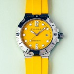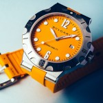 While the Bulgari Diagono Scuba looks like a playboy, it is more a rugged athlete. As we already established that its colors are not merely for fun, neither is the rest of the watch. The 41mm stainless steel case is fitted with a unidirectional rotating bezel. Hands, numerals and hour indexes are generously applied with SuperLuminova for increased visibility, and the watch signature case comes with screw down crown and crown guard. Inside keeps Bulgari’s manufacture movement BVL 191 the time, with its case protecting it to 30 bar.