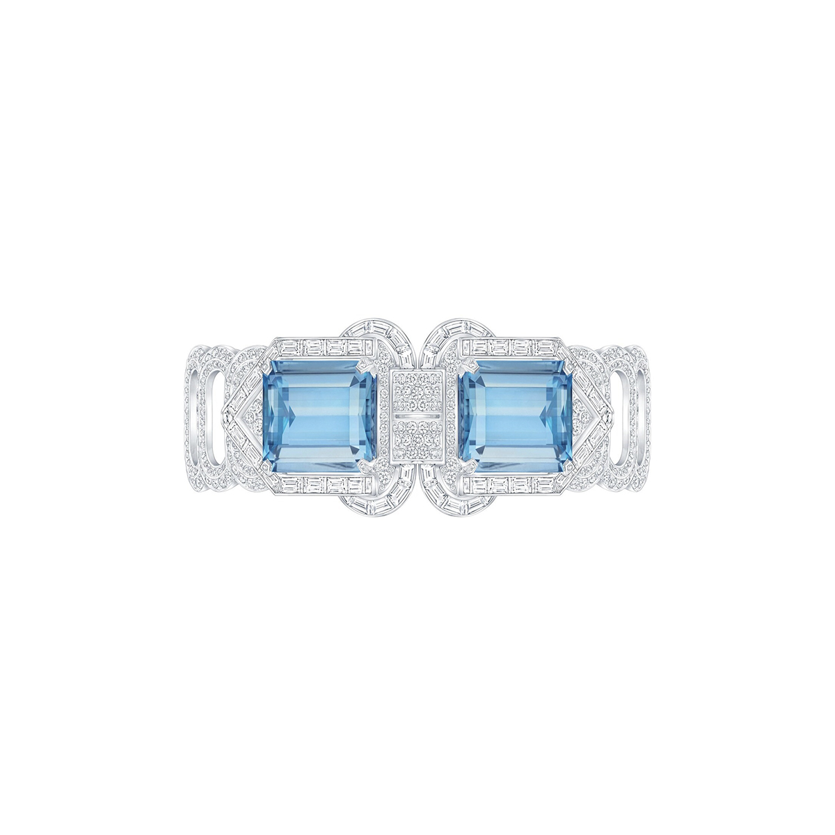 Louis Vuitton Bravery Collection Le Tumbler bracelet in white gold with aquamarines and baguette-cut diamonds; price upon request