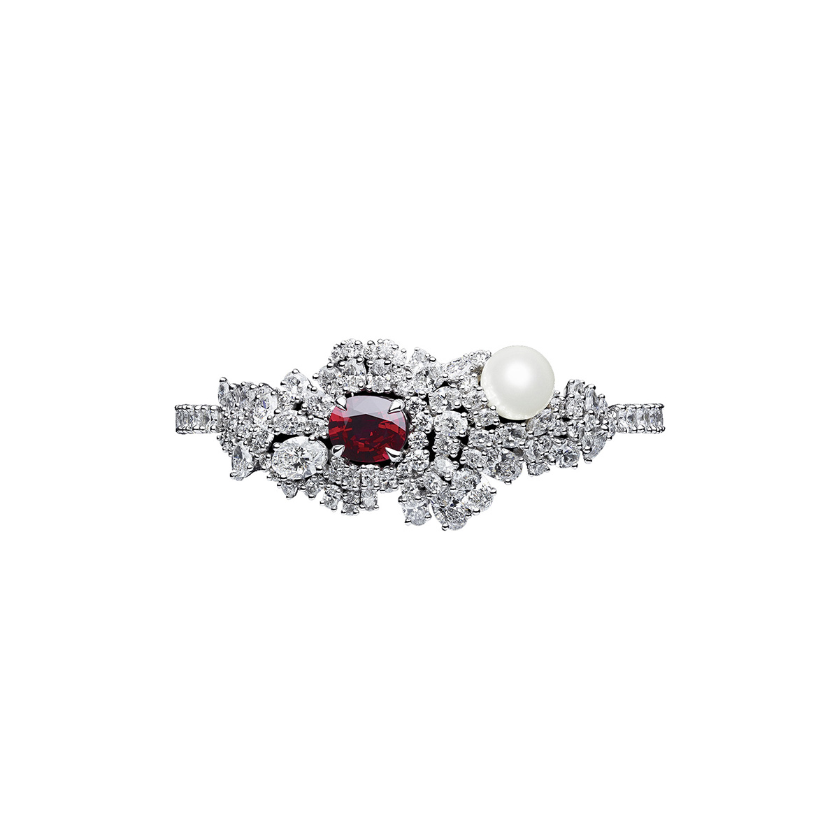 Dior High Jewelry Tie and Dior bracelet in white gold, diamonds, white cultured pearl and ruby; price upon request