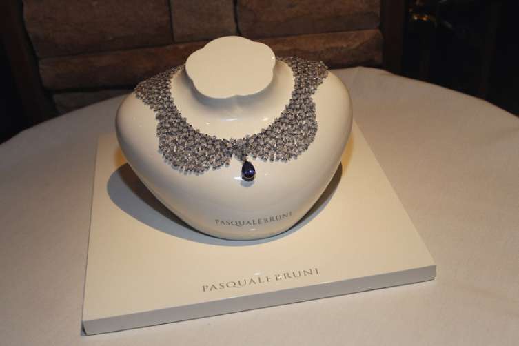 Petochi then stood to say a few words about the philanthropic and altruistic Saban, before revealing that Pasquale Bruni would be donating a pair of 18k gold and diamond heart earrings (which sell for roughly $20,000) to Cheryl to auction off at an upcoming fundraiser; the money raised will be donated to one of her charities. Saban stood as well to say how honored she was to have been featured in the issue.