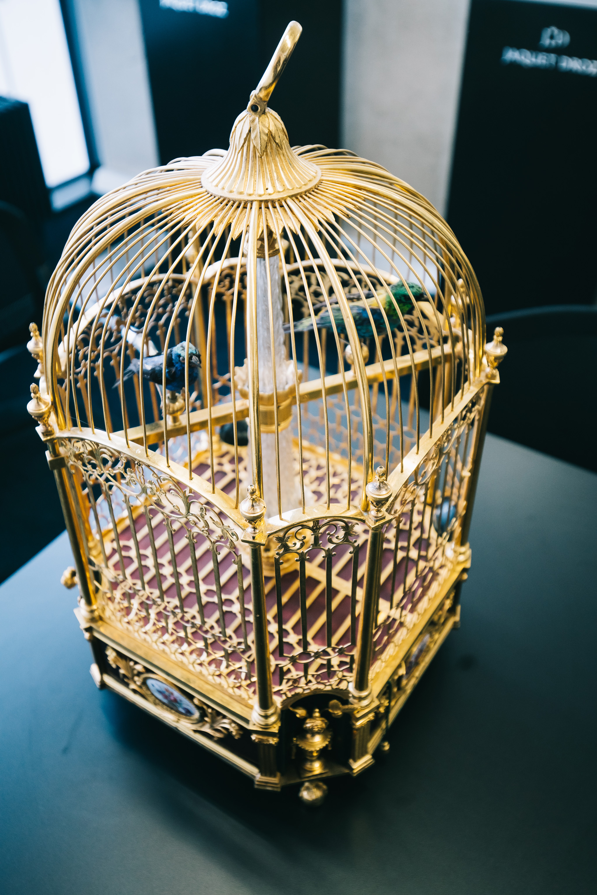 The end of our visit, in a showroom where we are met by playful automaton Charlie first seen at Baselworld 2013, takes us back in time with a rare, inestimable collection that includes singing birds in Bird Cages, pocket watches and snuff boxes, some of which date from 1785.