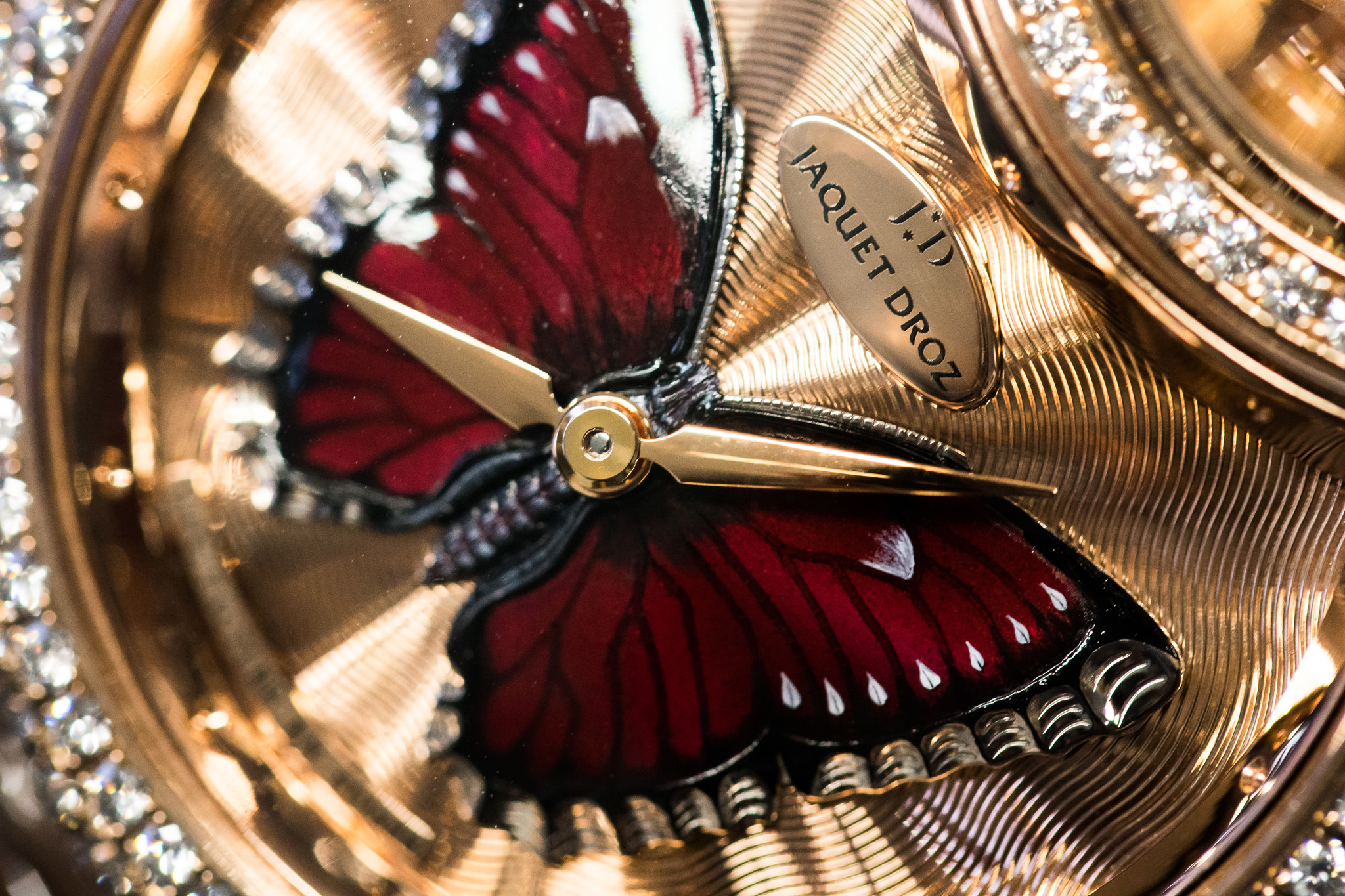 Jaquet Droz is master of all métiers d’art. Outstanding sculptors, engravers, Grand Feu and ‘émaillage’ enamellers, and painters who paint birds with a brush no thicker than a hair demonstrate their expertise just a few rooms away from master restorers who, among other skills, can make new blued hands with a flame of 350°C to replace those on century-old timepieces.