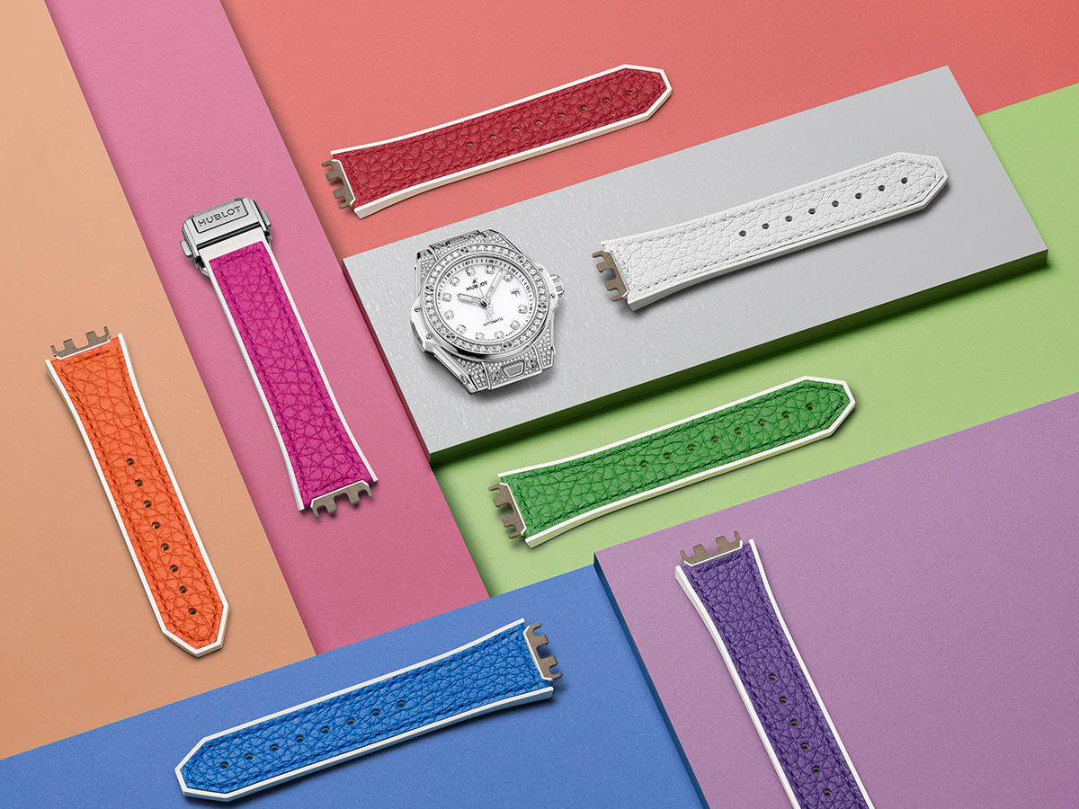 For a more trendier yet sophisticated approach, the Big Bang One Click 33s reveal their many facets and come with a new luxury of silky bracelets in a range of vibrant colors. “Hublot excels in flouting conventions, perfectly matching materials that are rarely seen together or have no natural affinity. It’s been a very long time since timepieces were synonymous with austerity. Precision is the common denominator of Haute Horlogerie and jewelry. The Big Bang One Click combines the best of both worlds by giving you the freedom to match your jewelry with your look,” says Guadalupe.
