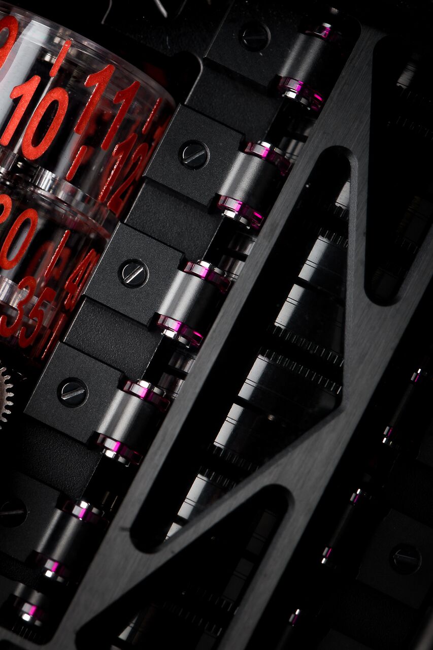 Being extraordinary, for both the car and the watch, is a symbiosis of design and technical prowess. One cannot perform without the other. With the Hublot MP-05 LaFerrari Aperta, this becomes clear when you look at behind the lusciously shaped sapphire crystal. There you see the main attraction: eleven (11!) mainspring barrels, coupled in series, giving the watch a total power reserve of a whopping 50-days.