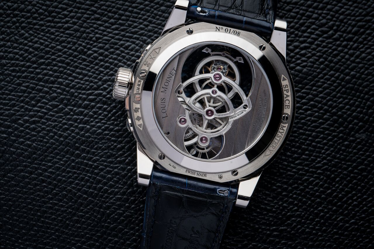 While Louis Moinet is in many ways a philosopher’s watch, the watchmaking tradition is paramount. Sometimes this is done in a classical way, regarding decoration for example, but when you take a look at the back of the “Space Mystery” and examine the intricate bridge constructions, you know that it doesn’t stop there. It becomes evident that Louis Moinet is a brand that has found its niche by first excelling in watchmaking itself.