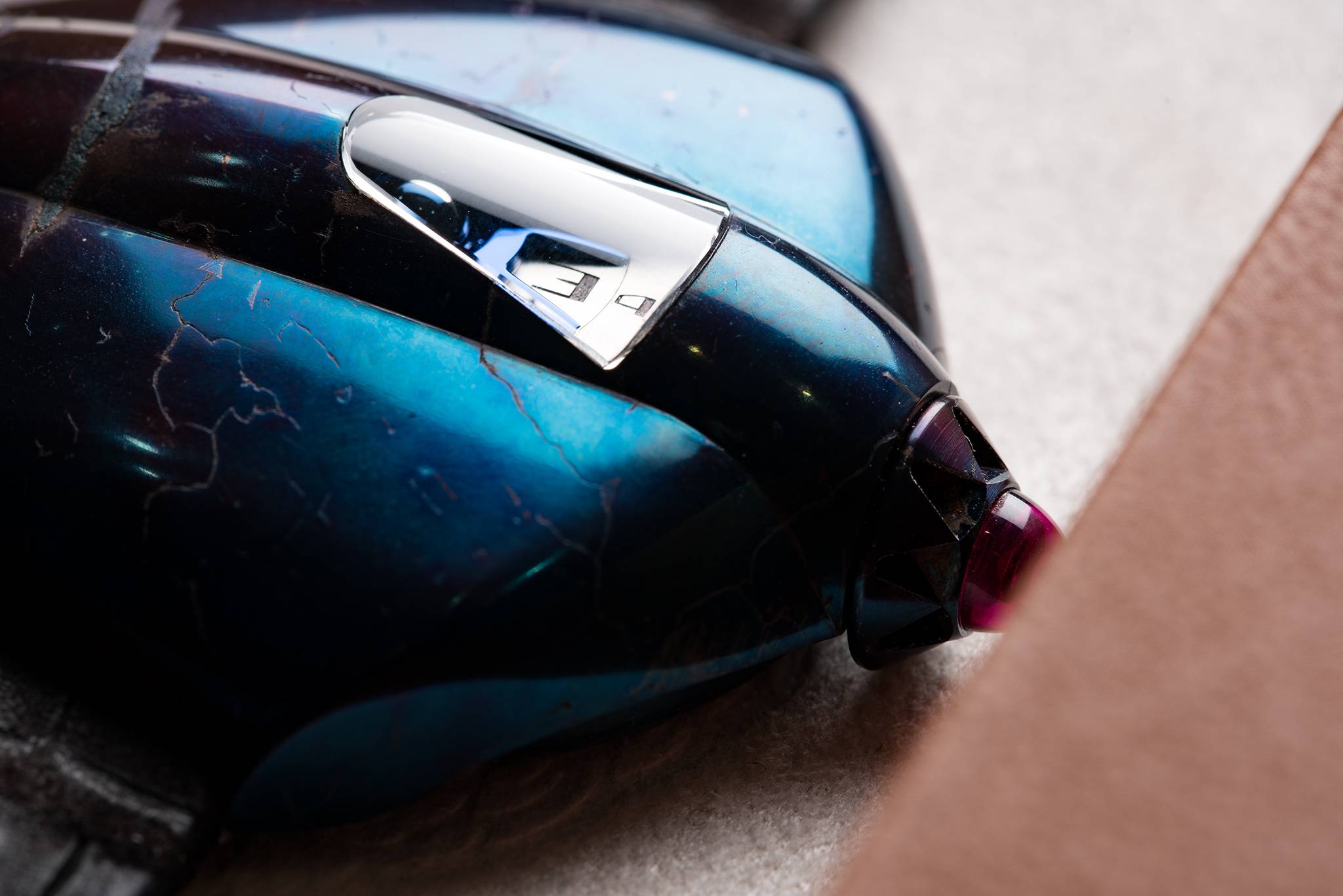 So, the DW5 Meteorite doesn’t look like it belongs on the wrist. But does it feel at home once it’s strapped on? Surprisingly so, we found. Top to bottom, the case only measures 39mm, meaning it’s smaller than most modern timepieces. However, its width is, again, a bit of an issue. It measures 50mm and the large ruby cabochon at the end of the crown digs deep into the top of the hand. The same was already true of the original DW5, so the lack of progress there is somewhat dispointing.