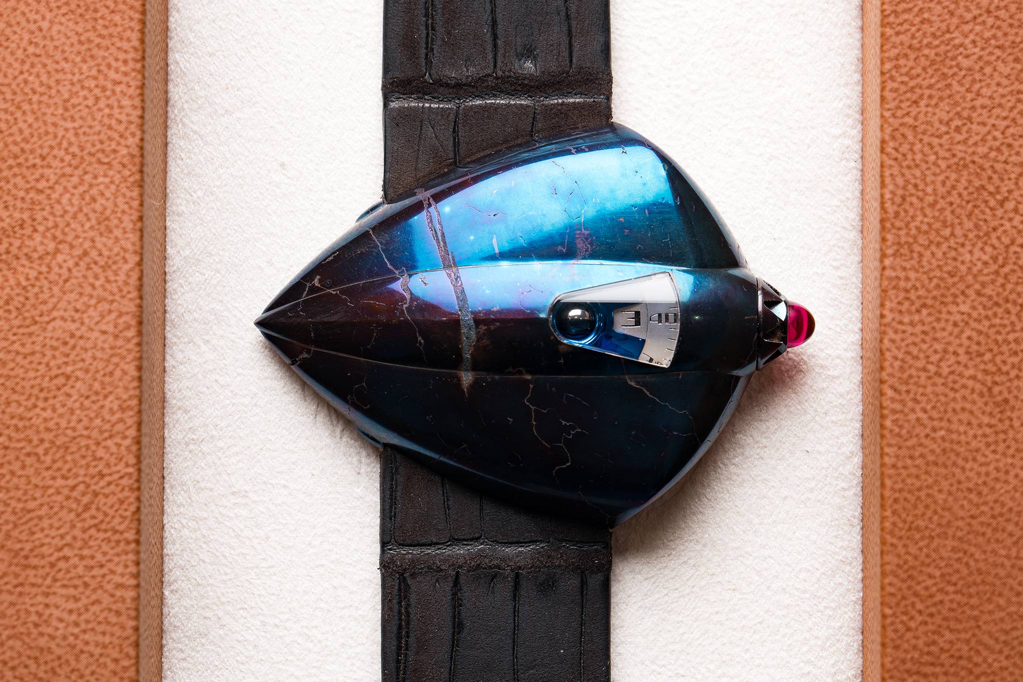 De Bethune says it has worked tirelessly on the raw material, subliming imperfections such as the large gash that runs in the middle. And it’s done an amazing job at that. For such an odd contraption, it actually displays the hours and minutes in the cleanest, most straightforward way.