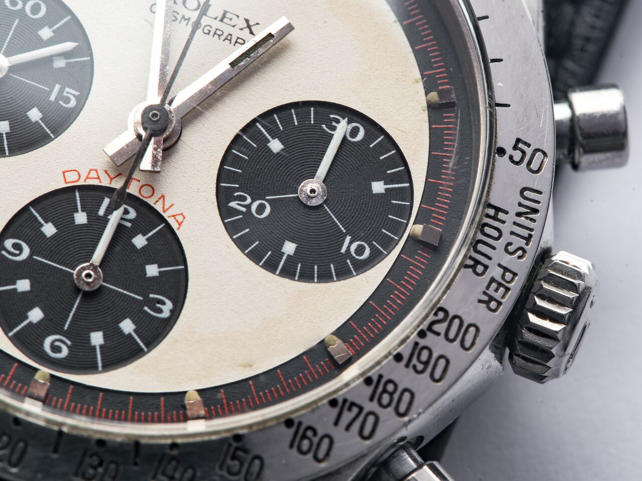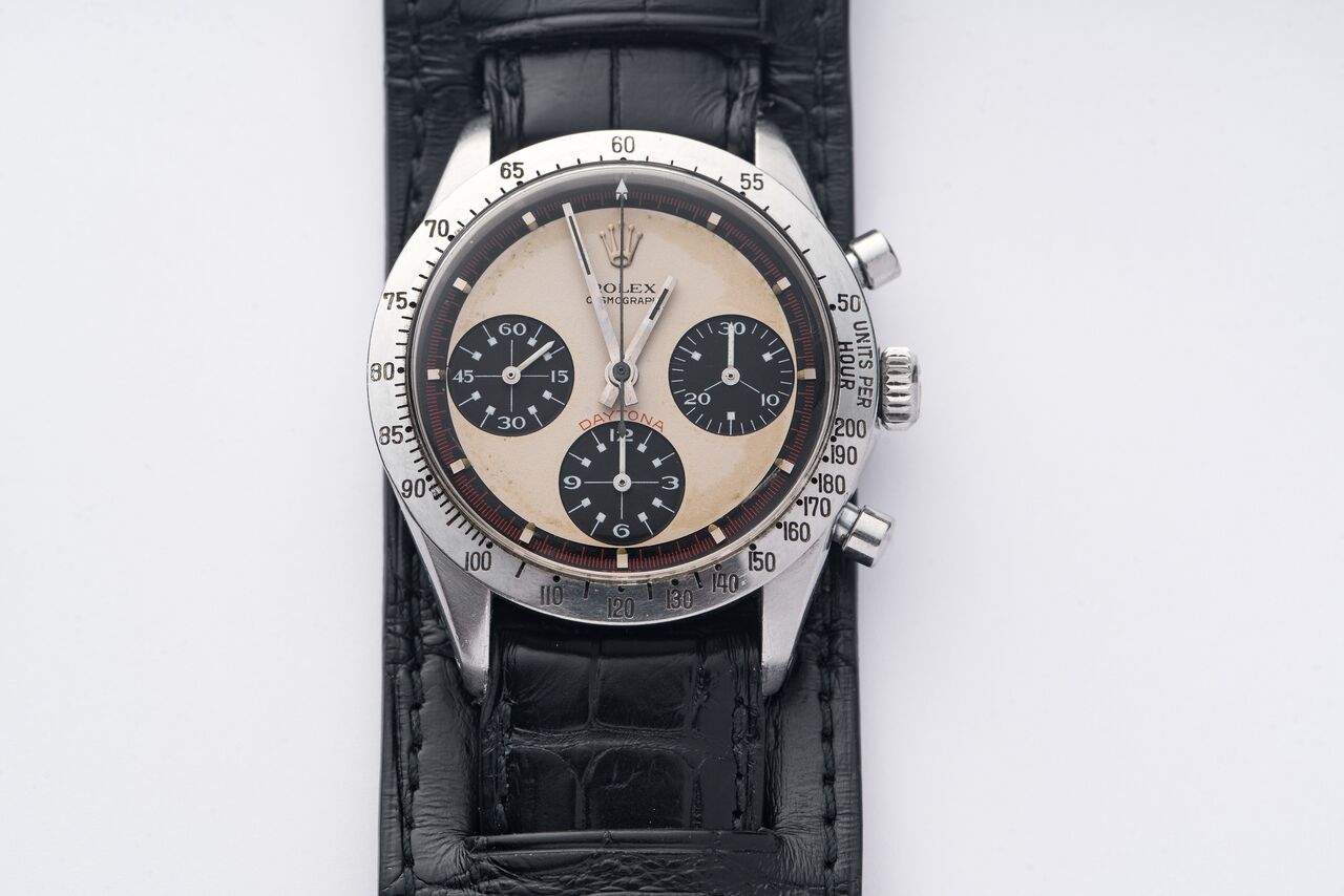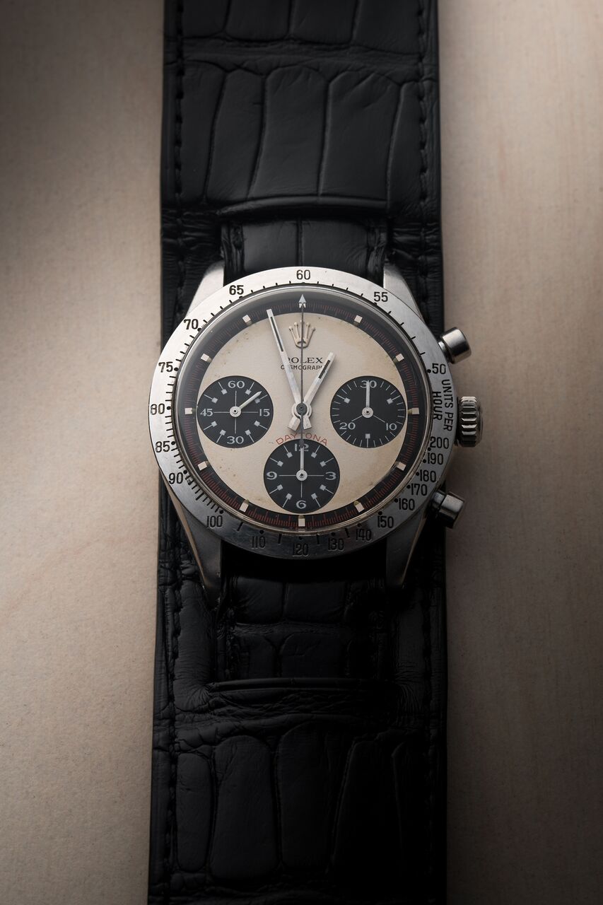 While Paul Newman’s own Daytona was a reference 6239, the type of watches that we now refer to as “Paul Newman” include more reference numbers such as the 6241, 6262, 6264, 6265 and 6263. While different color combinations are accepted, it is mandatory to have that exotic dial fitted with the watch, featuring their signature subsidiary dials with art deco-style graphics. They are among the most recognizable, desirable and sought-after vintage Rolex, yet the watch that gave all these others their nickname has never been up for public sale ever.