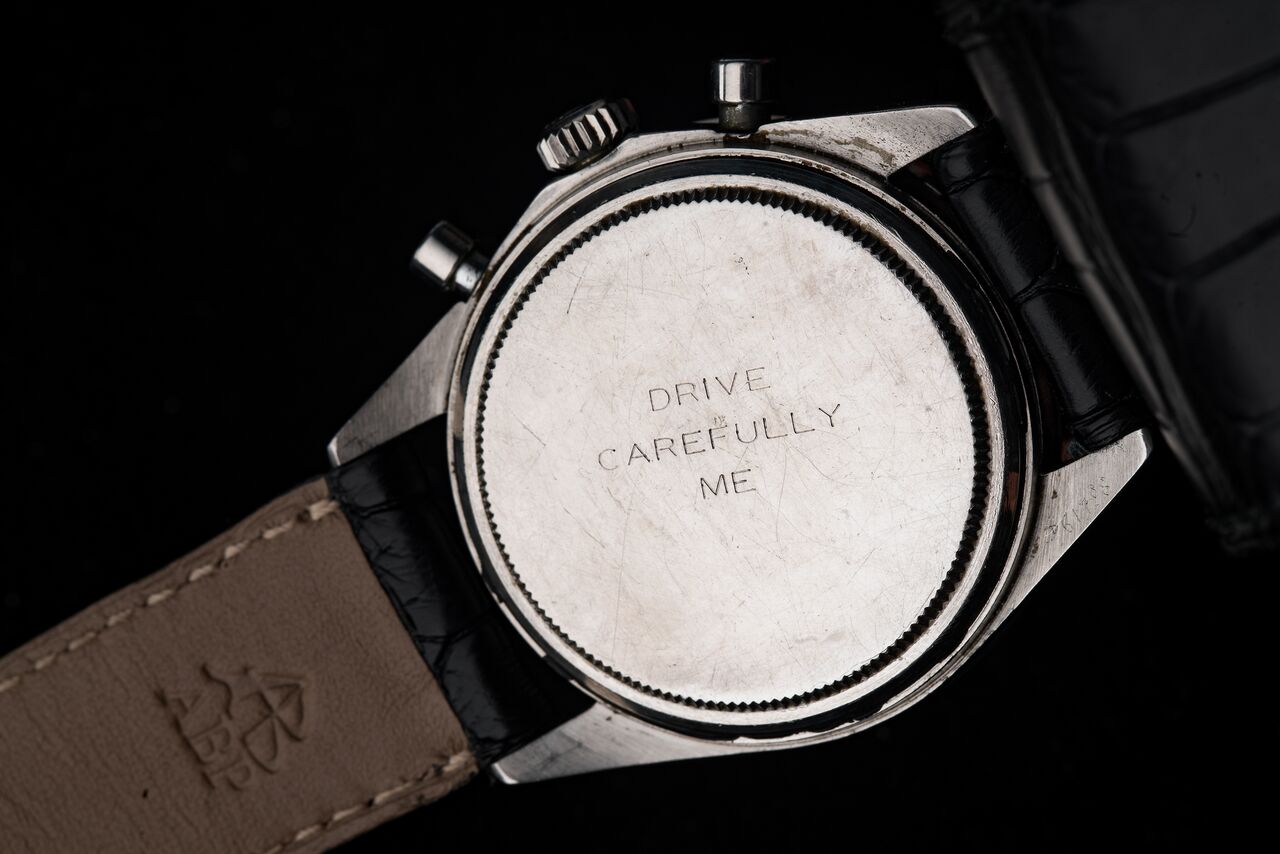 Part of the magic of this watch is that it goes so much further than being a watch owned by a famous actor. The watch was a gift from his wife Joanne Woodward to mark the start of his racing career, and most likely presented to him in 1968 or 1969. This also explains the endearing engraving on the back of the watch which says “Drive carefully me.” Driving Paul Newman did for sure, as he had a very successful, and indeed safe, racing career with finishing third overall and won the GT-class of the 24-hour endurance race at Daytona in 1995, celebrating his 70th birthday only eight days before!
