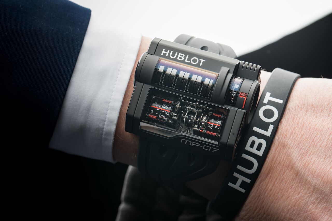 Even with more complicated watches, which usually have a tendency to use more power as well, Hublot has been able to achieve power reserves, which are far more than usual. The MP-09 was the very first bi-axis tourbillon that Hublot introduced. This complication can be quite power-hungry, yet Hublot was able to give the manual wind movement a power reserve of five days. Another example of longer than average power reserves that are not explicitly advertised as such can be found in the Techframe Ferrari Tourbillon Chronograph. This is a watch that Hublot developed together with Ferrari to mark its 70th anniversary. Despite featuring a chronograph, as well as a flying tourbillon, does it offer a power reserve of 115 hours.