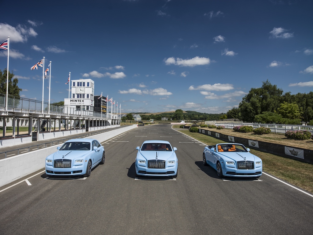 Turning to the brand’s more colorful side, the Paradiso Collection of one Dawn, one Ghost and one Wraith uses the newly-developed Quail Blue exterior paint color, which was inspired by the Quail Motorsports Gathering and its beautiful views of the Californian water and sky. The interior color schemes of the car vary, with the Ghost in Black and Charles Blue leather, and the Wraith and Dawn with Mandarin. The interiors of the three cars vary in design. Ghost, which is more focused on the rear passenger’s comfort, reflects this visually with a more intimate and cool Black and Charles Blue leather color-way off set by Charles Blue and Mandarin stitching and a Black and Charles Blue two-tone steering wheel. Wraith and Dawn add more Mandarin into the interior color palate, increasing the visual heat and driver’s intent of the cockpit.