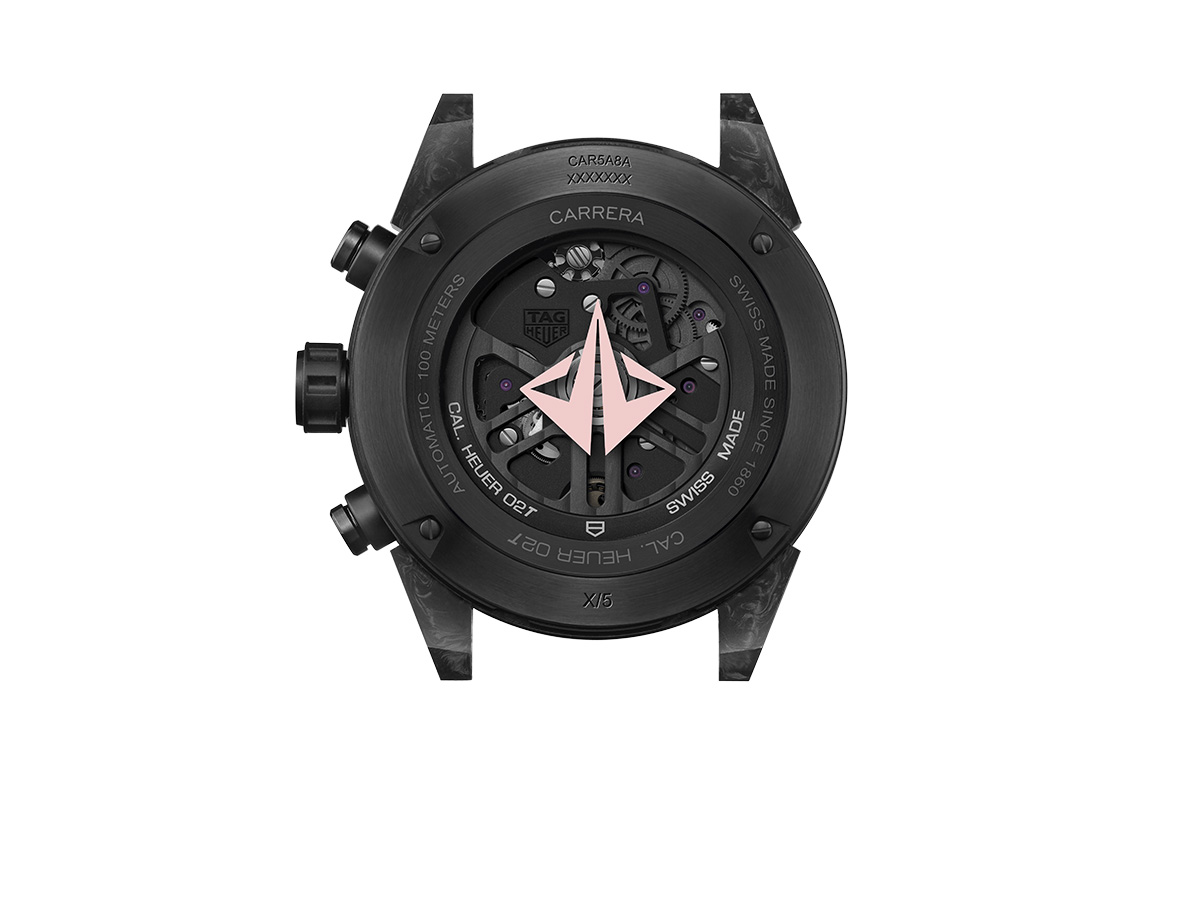 With only five timepieces worldwide, the TAG Heuer x Jimmy Butler Special Edition Carrera Heuer 02T Tourbillon is nothing short of special. In this new co-designed Tourbillon between the Swiss watchmaker and basketball superstar, Jimmy Butler selected pale pink accents, appearing on the dial in the form of a pink polished central hand accompanied by pink superluminova® as an homage to the most important person in Butler’s life: his two-year-old daughter, Rylee.