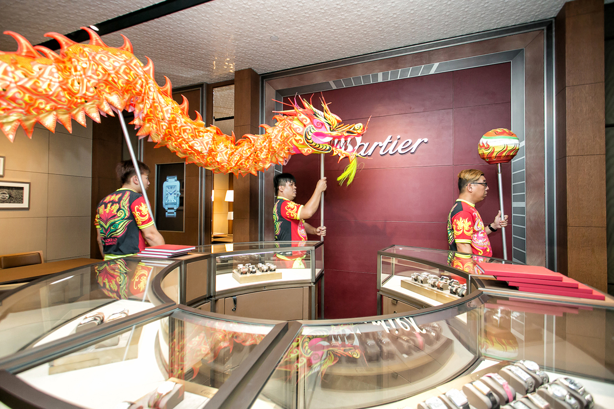 It’s traditionally believed that the longer the Chinese dragon is, the more luck it brings to the people around it. In this case, the lengthy dragon that snaked through the halls of the boutique is sure to bring loads of fortune.