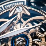 The sun is perhaps the most remarkable feature of this watch: it is the engraved, baroque styled tourbillon in the center of this watch. Crafted from 18K pink gold and set with a diamond at the center, it represents the largest planet in our solar system. It is also another excuse to take out your loupe once more and get a deeper appreciation for the engravings, especially the two Phoenix heads.