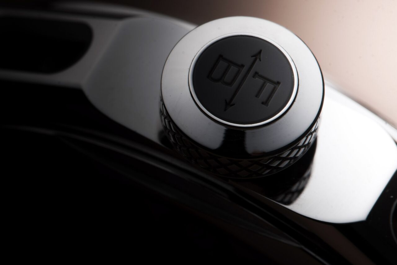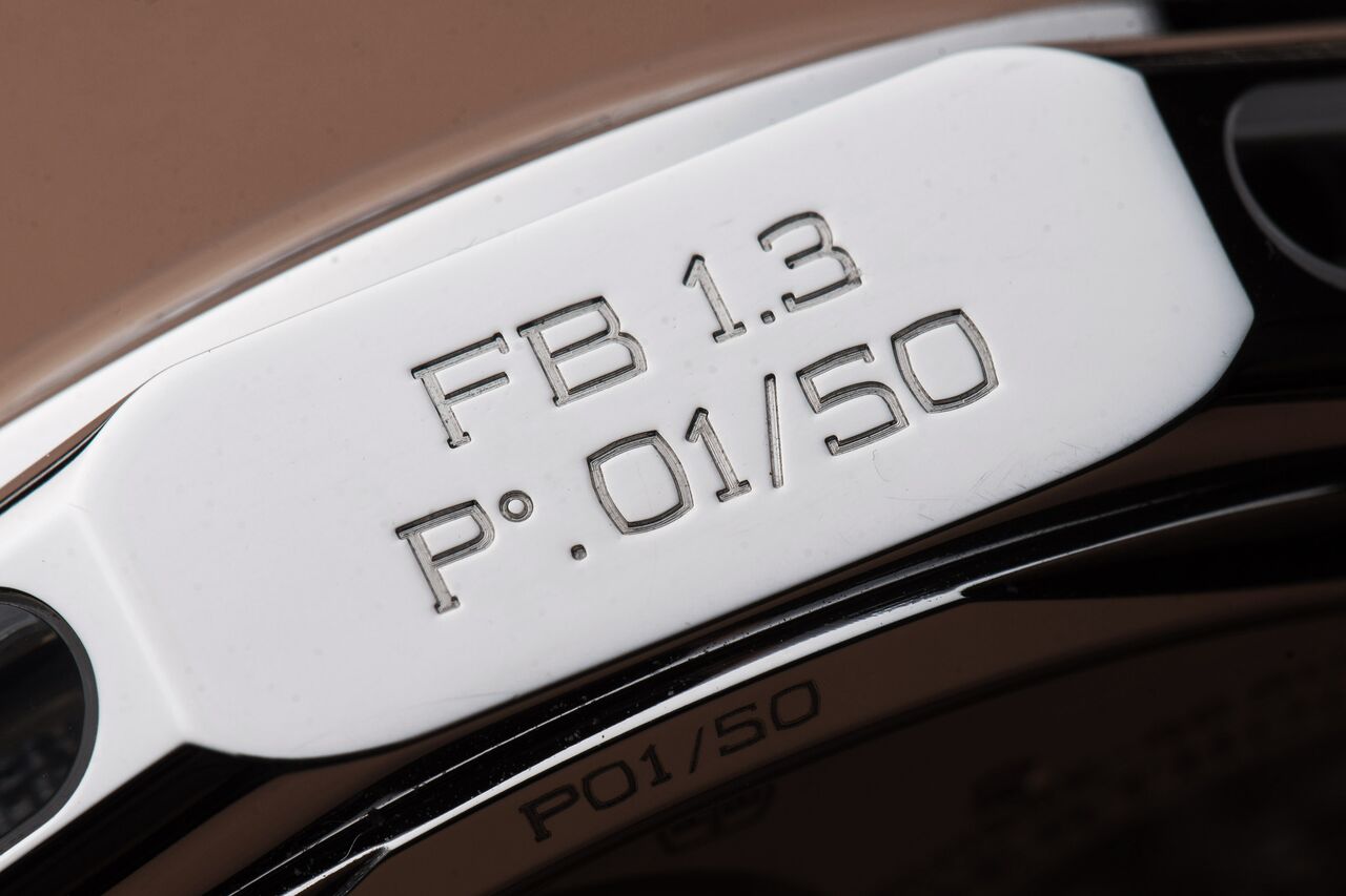 The movement is housed in an exceptional 44mm case, which is for the FB 1.3 made out of platinum. It features a unique style, which can best be described as a modern interpretation of vintage style. In contrast to the platinum are the lugs made from grey ceramic and feature titanium bolds. The logo on the crown is also engraved in a ceramic insert.