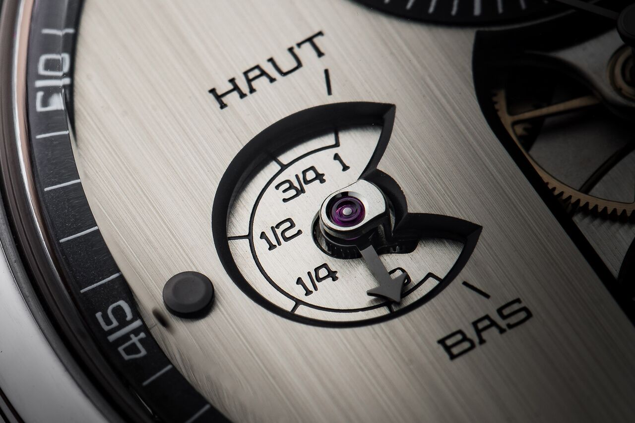 The dial, made of satin-brushed nickel silver, incorporates this pleasing color combination even further in the watch. It gives it a restrained, understated kind of flair, in a watch that stands out by its unique movement, and exceptional high finish.