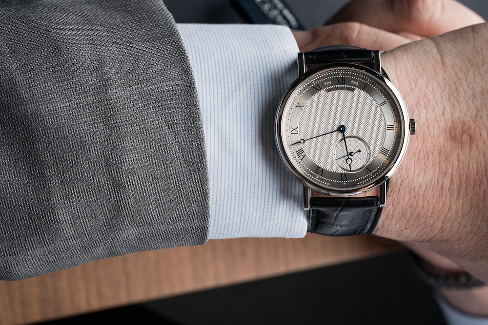 A watch in white gold often looks more understated and ‘sportive’ than other colors of gold. This is best illustrated by the Breguet Classique 7147, which is as traditional a dress watch as you can get them these days. In rose gold, it looks like Abraham-Louis Breguet has crafted it himself, giving it a vintage appearance even when new. That exact same watch, with exactly the same dial, fitted with a white gold case gives the watch a bit more of a contemporary edge.
