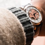 The dial itself consists out of several layers on different levels, with a grainy gold center, enclosed by a steel frame featuring a mirror polish, which is screwed to the dial. The white hour ring completes the dial setup, and features tradition Arabic numerals, yet in different sizes depending on their location. The overall result is rather easy to read yet exotic at the same time. Great care and craftsmanship went into its creation, and that is clear from the first glance.