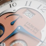 Even at a glance, this watch can only be mistaken for an F.P. Journe, not only because of its elegant case but mainly by its expressive dial. Although very easy to read, Journe distinctly follows his own ideas in what makes a great dial design. The large date resides slightly off centre between eleven and twelve o’clock, and on the other end of the dial, the seconds are indicated by a disc. A moon phase and power reserve indicator complete the functions of the dial, while the hour and minutes are shown by blued hands in a shape typical to Journe.