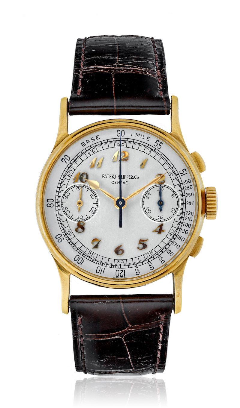 The Patek Philippe that Joe DiMaggio used to wear is the highly coveted Reference 130. Known for its slender lugs, Patek Philippe started to make this reference in 1934 in both stainless steel as well as precious metal. DiMaggio’s watch was made however much later, in 1947, is crafted from 18K yellow gold and features the desirable dial with Breguet numerals. By that time Joe DiMaggio was already a living icon, with his 1941 56-game hitting streak, and would also later on, reluctantly, give his private life center stage with his turbulent and short-lived marriage with Marilyn Monroe. The estimate of his Patek Philippe reference 130 is $150,000 – 300,000