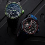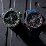 Color can do a lot for a car, but for a watch as well. Technically both Excalibur Aventador S watches are identical, yet they look quite different. The green version is a boutique exclusive, limited to only 8 pieces, and uses a monochrome theme to really set off the bright green color of the many details in and outside the watch. How different is the other Excalibur Aventador S, where red and neptune blue highlight various aspects of the watch, creating a very vibrant piece of mechanical art, and a true testimony that the sense of speed can be captured in a wrist watch!